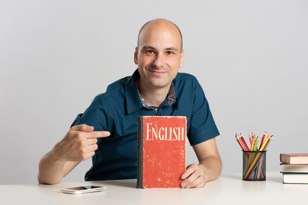 驚いてハゲ男が机で本を読む の写真素材 画像素材 Image 4050