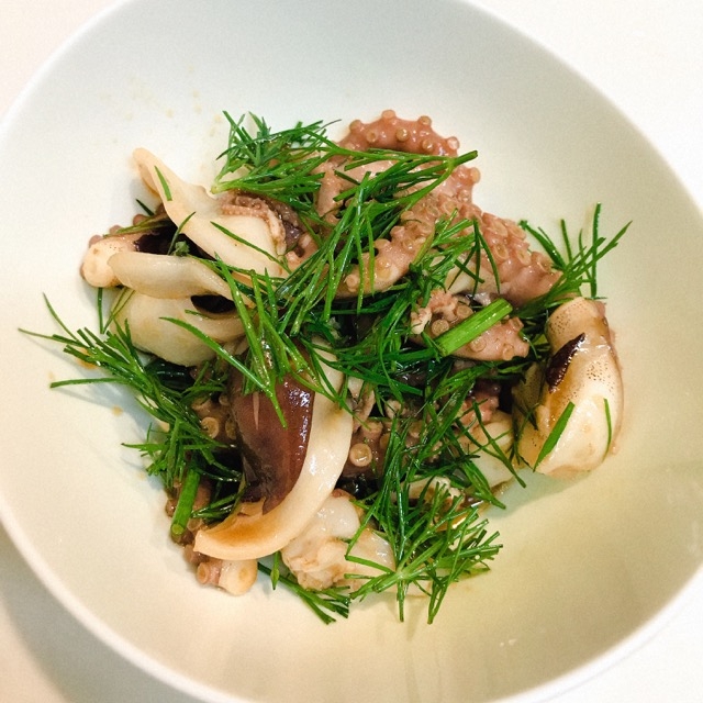 春先のやわらかい やりいか とディルを和えて 白ワインにぴったり